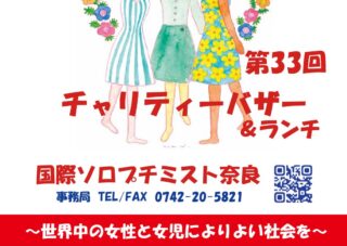 第33回チャリテイーバザー&ランチ 開催2025年11月28日金曜日 奈良ホテルにてバザーは10:00~15:00まで開催いたします。エコノレッグは靴下を販売いたします。他には、工芸品、生花、食品など...