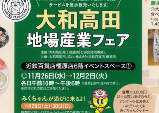 大和高田地場産業フェア11月26日(水)~12月2日(火)午前10時から午後6時(最終日は午後4時終了)近鉄百貨店橿原店6階 イベントスペース① 大和高田市の地場産業や企業の製品・サービスを...