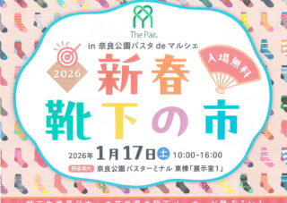 2026 新春靴下の市 in奈良公園バスタdeマルシェ日時:2026年1月17日(土)10:00~16:00場所:奈良公園バスターミナル東棟「展示室1」交通:近鉄をご利用の場合東改札口より、1番出口を...