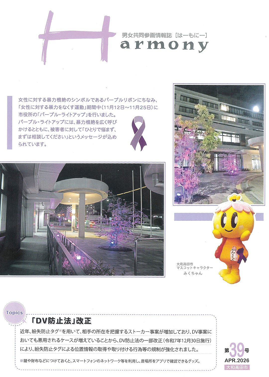 男女共同参画情報誌「はーもにー」に掲載されました!